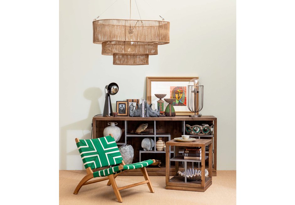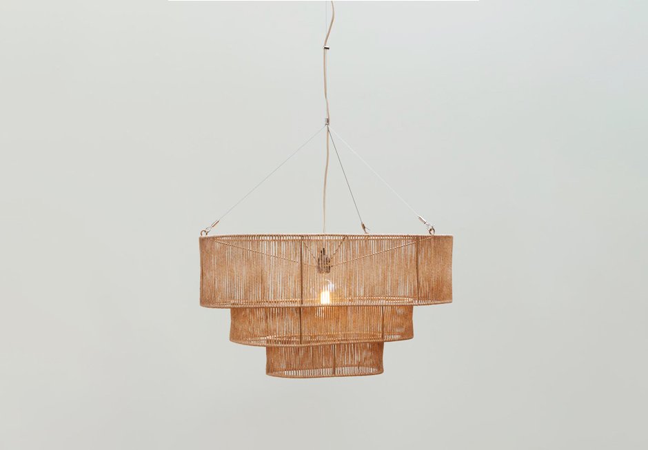 Φωτιστικό οροφής από μεταλλικό σκελετό και πλέξη από γιούτα.