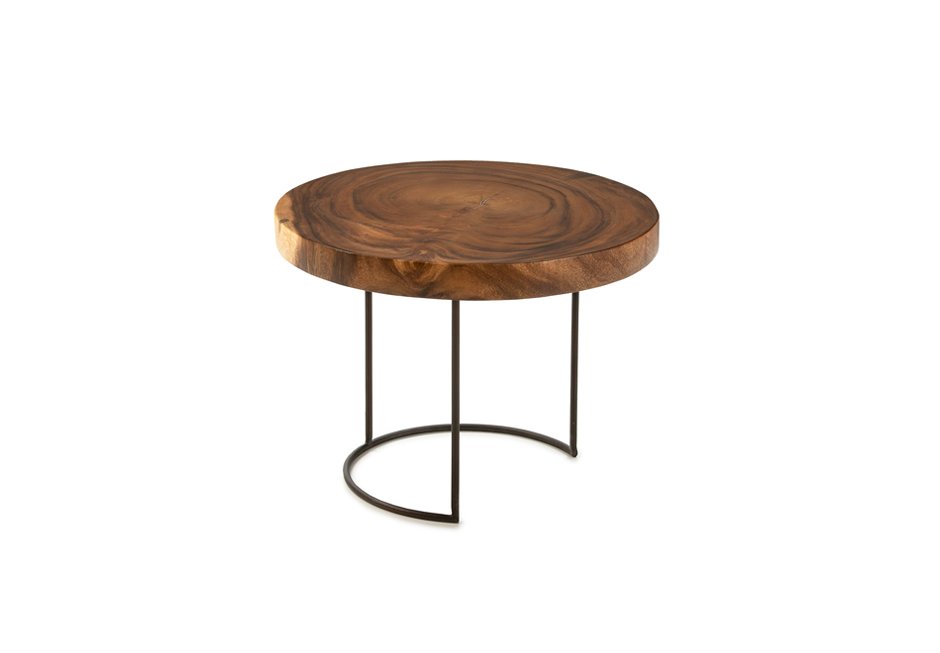Τραπεζάκι με επιφάνεια από ξύλο και μαύρη μεταλλική βάση. Διατίθεται σε διαστάσεις Ø50x38h cm.