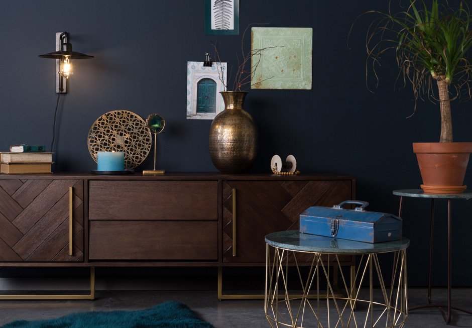 Στρογγυλό τραπεζάκι με επιφάνεια από μάρμαρο και μεταλλική βάση στο χρώμα του μπρούντζου. Διατίθεται σε διαστάσεις Ø51x42h cm.