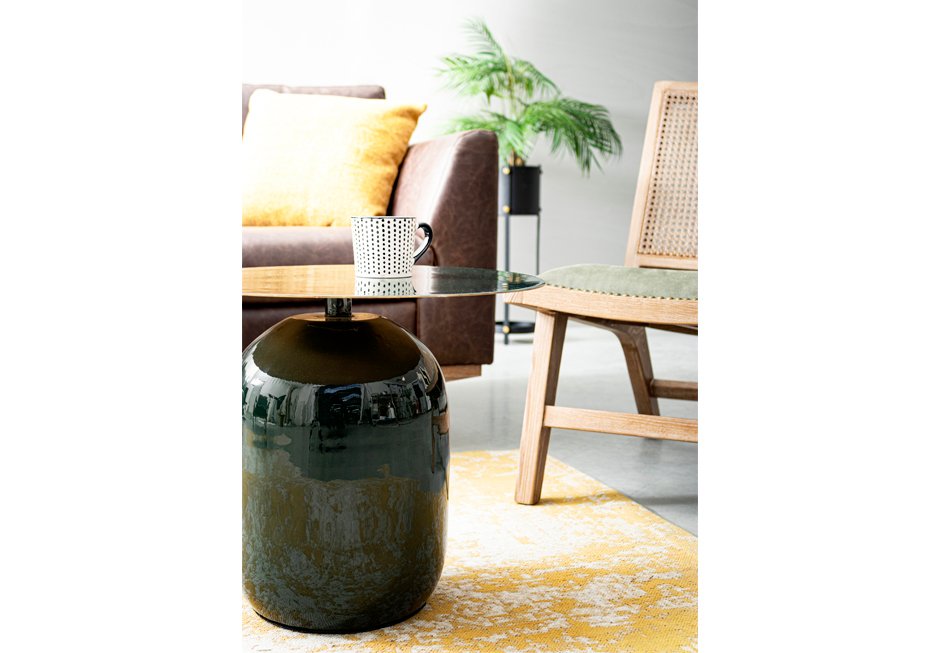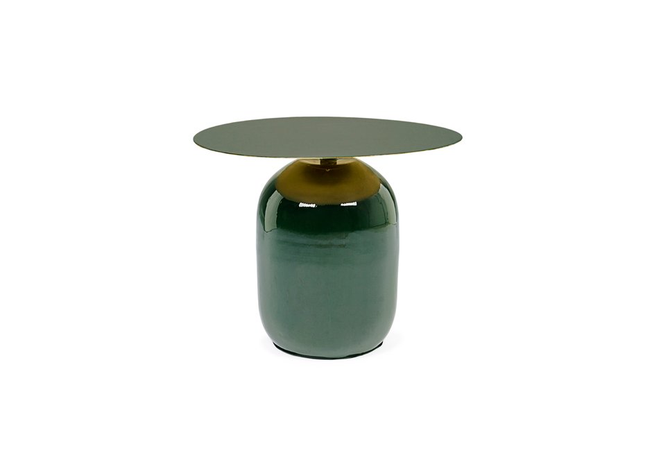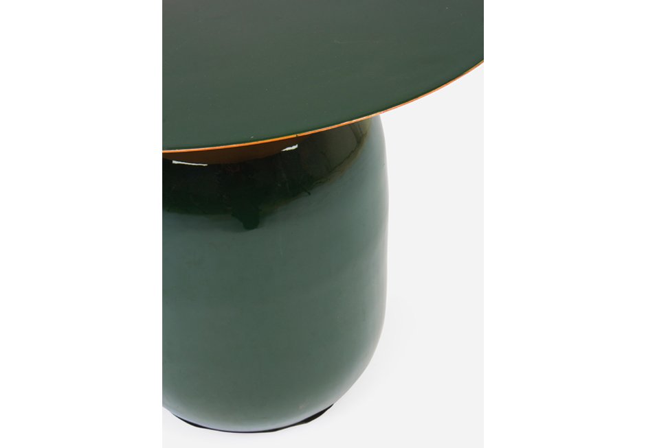Μεταλλικό βοηθητικό τραπεζάκι σε σκούρα πράσινη απόχρωση. Διατίθεται σε διαστάσεις Ø50×39,5h cm.