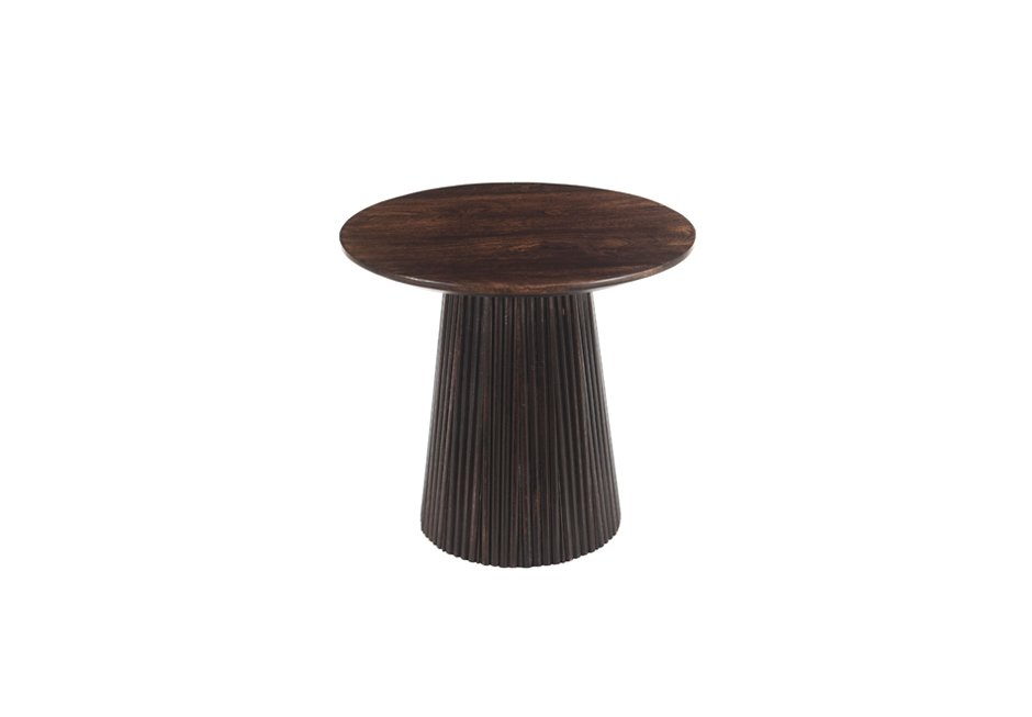 Βοηθητικό τραπεζάκι από ξύλο mango σε ανοιχτή και σκούρα απόχρωση του καφέ. Διατίθεται σε διαστάσεις Ø50x46h cm.