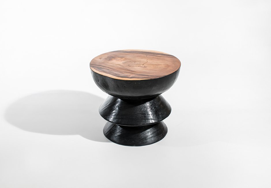 Βοηθητικό τραπεζάκι από μασίφ ξύλο τικ σε μαύρο χρώμα με επιφάνεια σε φυσική απόχρωση. Διατίθεται σε διαστάσεις Ø50x40h cm.