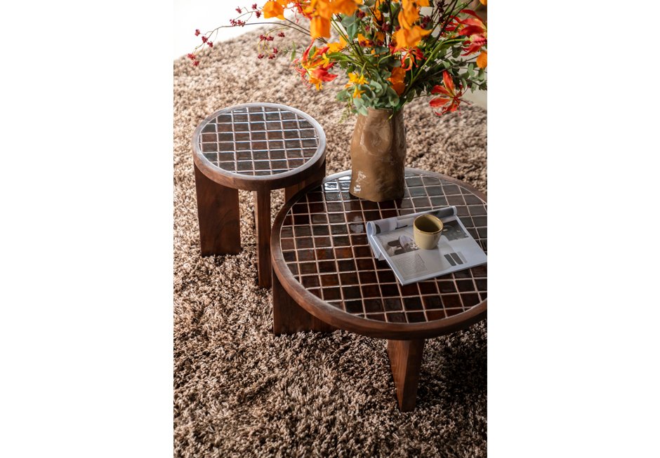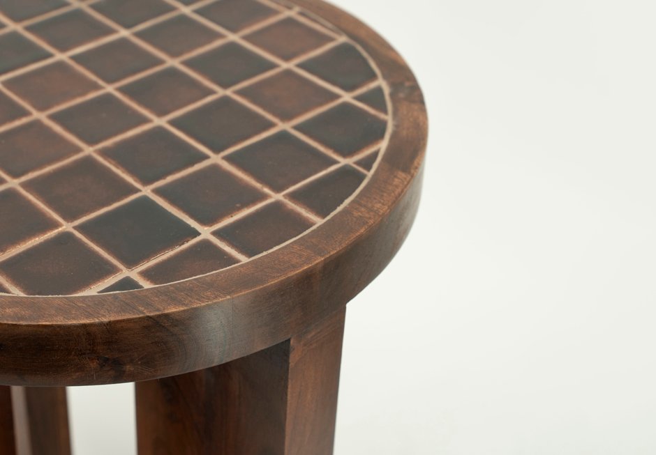 Βοηθητικό τραπεζάκι από ξύλο mango με κεραμική επιφάνεια. Διατίθεται σε διαστάσεις Ø40x45h cm.