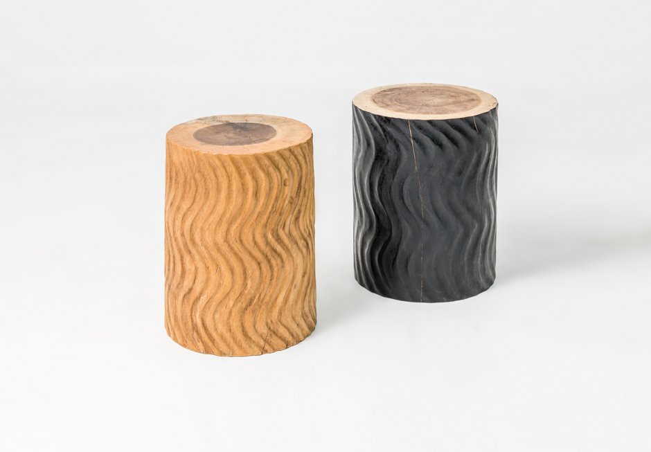 Βοηθητικό τραπεζάκι από μασίφ ξύλο suar σε μαύρο και φυσικό χρώμα. Διατίθεται σε διαστάσεις: Ø37x50h cm.