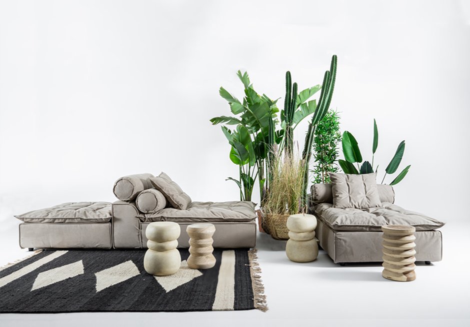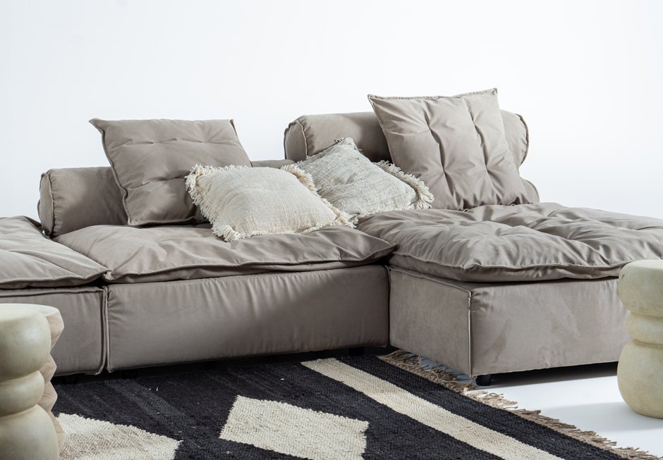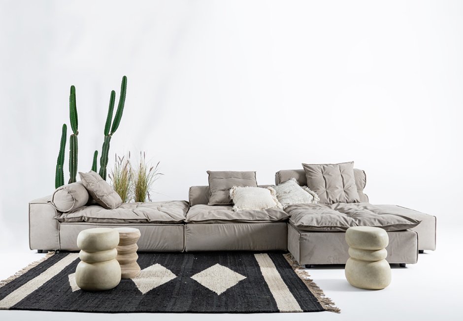 Καναπές σε διαστάσεις 405×170 cm. Διατίθεται σε διάφορες διαστάσεις και ποικιλία υφασμάτων, τα οποία αποσπώνται για καθαρισμό ή αντικατάσταση.