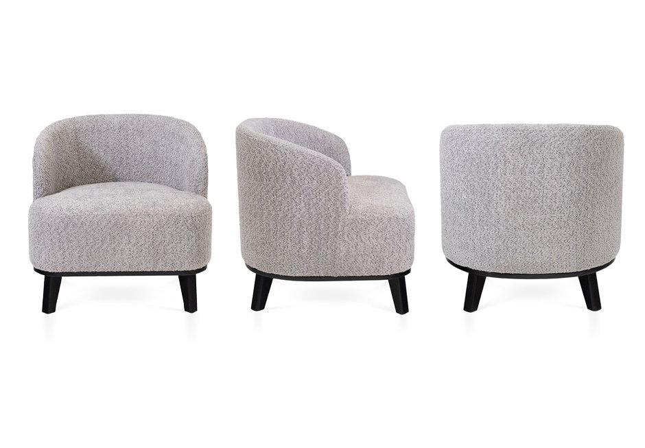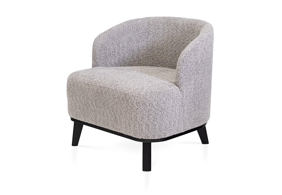 Πολυθρόνα ντυμένη με πόδια από ξύλο δρυός. Διατίθεται και σε άλλες αποχρώσεις ξύλου και υφασμάτων με διαστάσεις 67x67x67h cm.