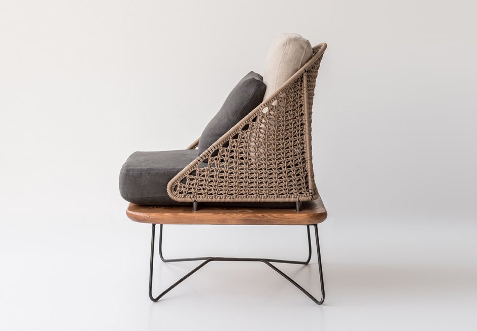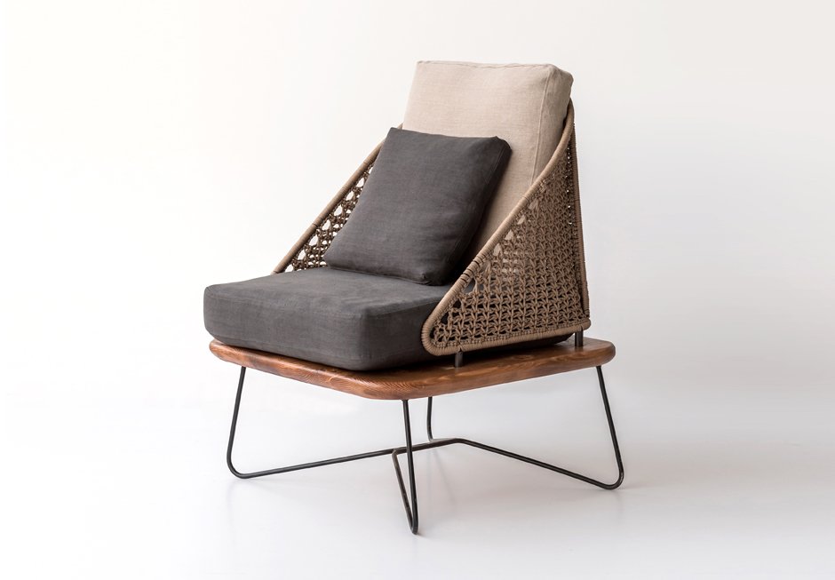 Πολυθρόνα από μεταλλική βάση με δρυς κάθισμα και πλεκτή πλάτη. Διατίθεται σε διαστάσεις 71x83x82h cm, σε ποικιλία υφασμάτων τα οποία αφαιρούνται για καθαρισμό ή αντικατάσταση.
