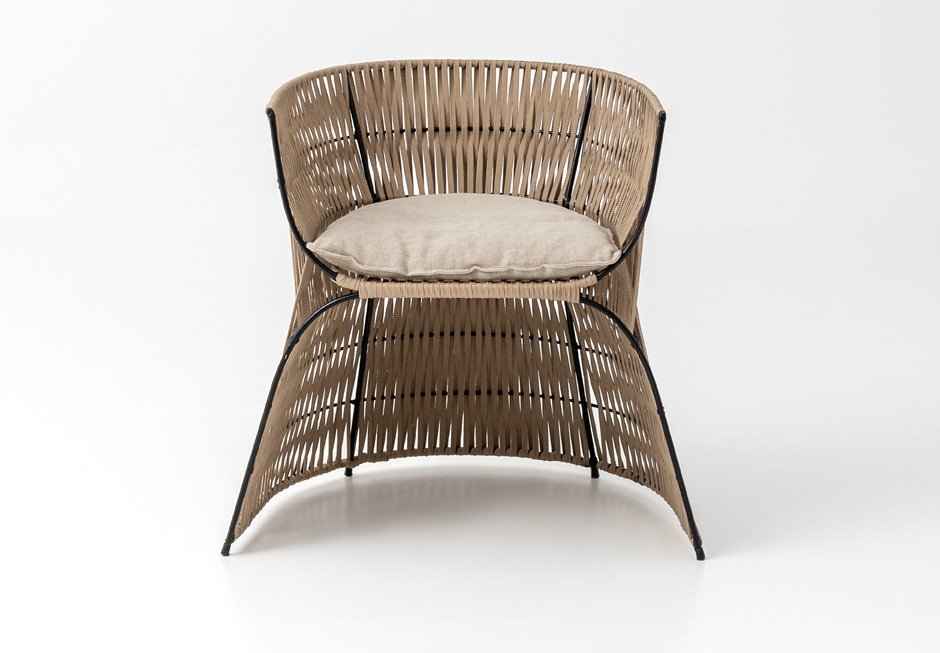 Πολυθρόνα από μεταλλικό σκελετό με χειροποίητη πλέξη. Διατίθεται σε διαστάσεις 64x55x73h cm.