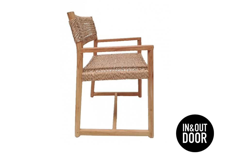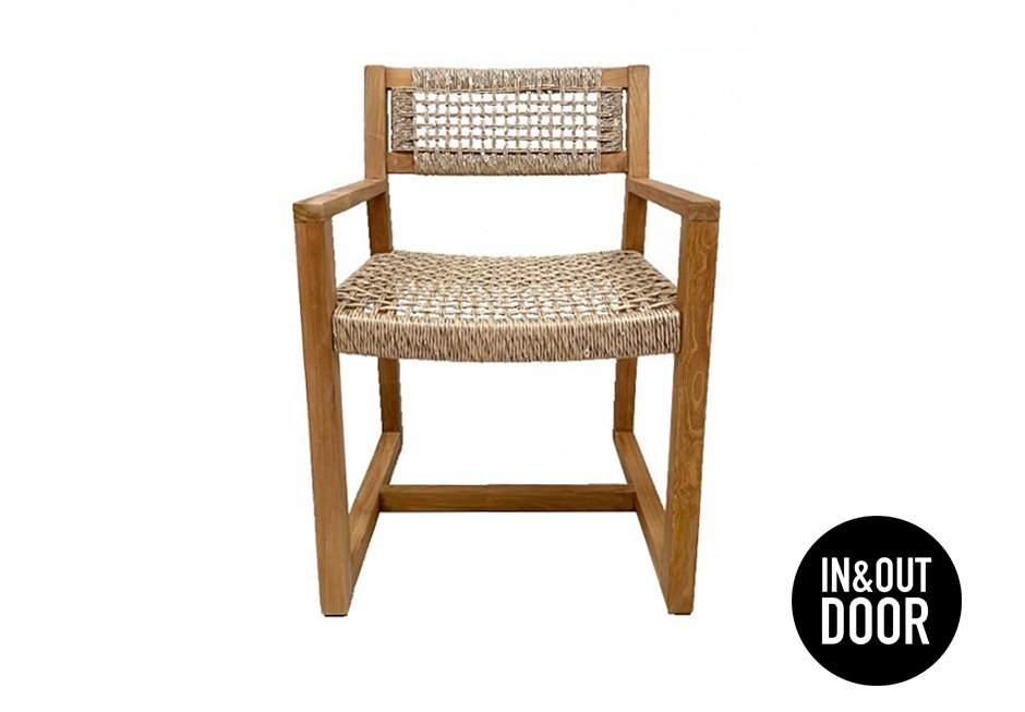 Πολυθρόνα από ξύλο teak και πλέξη από συνθετικό σχοινί. Διατίθεται σε διαστάσεις 53x47x75h cm.