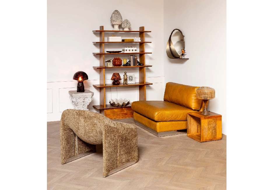 Πολυθρόνα από polyester επένδυση και σκελετό από σίδερο σε καφέ και caramel απόχρωση.