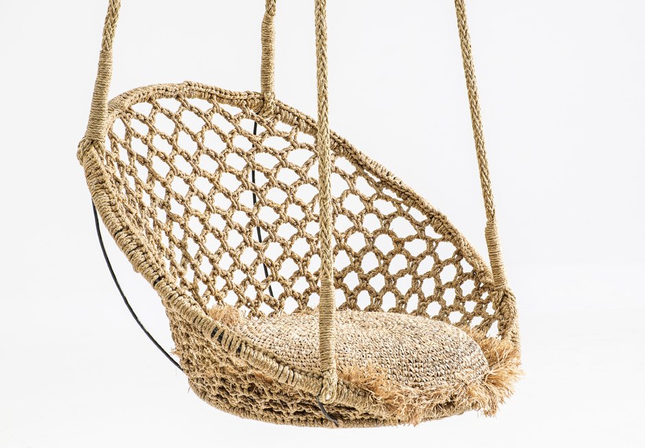 Πολυθρόνα κρεμαστή με χειροποίητη πλέξη σε φυσικό χρώμα