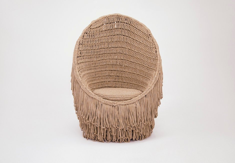 Χειροποίητη πλεκτή πολυθρόνα από σχοινί σε φυσική απόχρωση. Διατίθεται σε διαστάσεις: 94x55x136h cm.