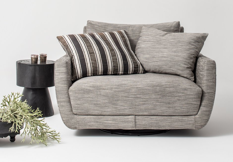 Ντυμένη πολυθρόνα, περιστρεφόμενη. Διατίθεται σε διαστάσεις 120×105 cm, σε ποικιλία υφασμάτων τα οποία αφαιρούνται για καθαρισμό ή αντικατάσταση.