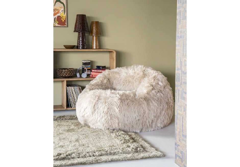 Φουσκωτή πολυθρόνα σε taupe, πράσινη και beige απόχρωση. Διατίθεται σε διαστάσεις: 111x111x75cm.