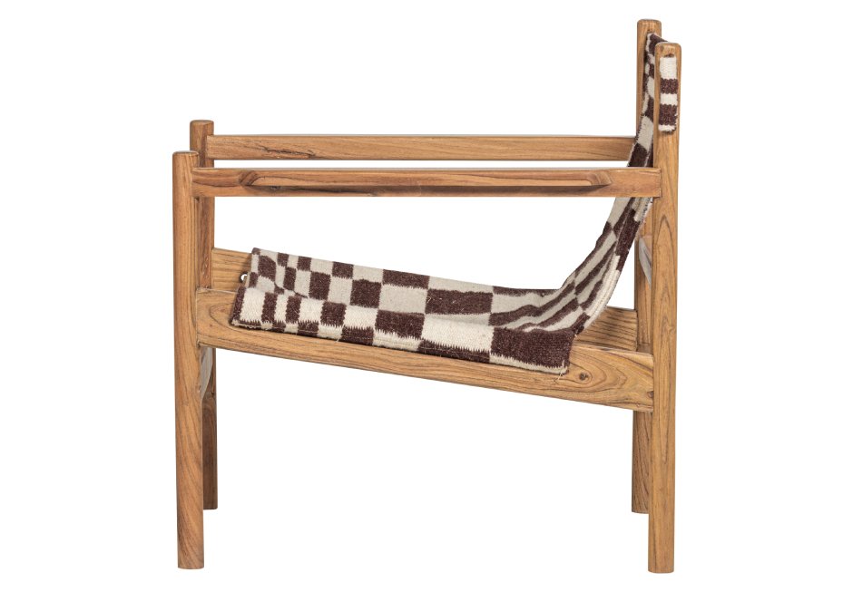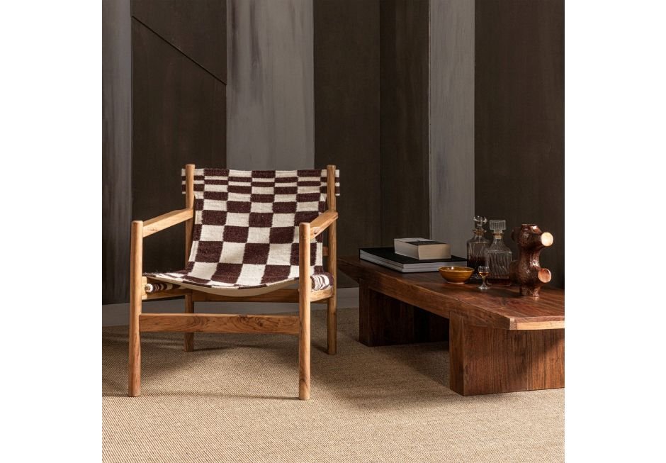 Πολυθρόνα ξύλινη σε καφέ απόχρωση. Διατίθεται σε διαστάσεις: 73x67x76cm.