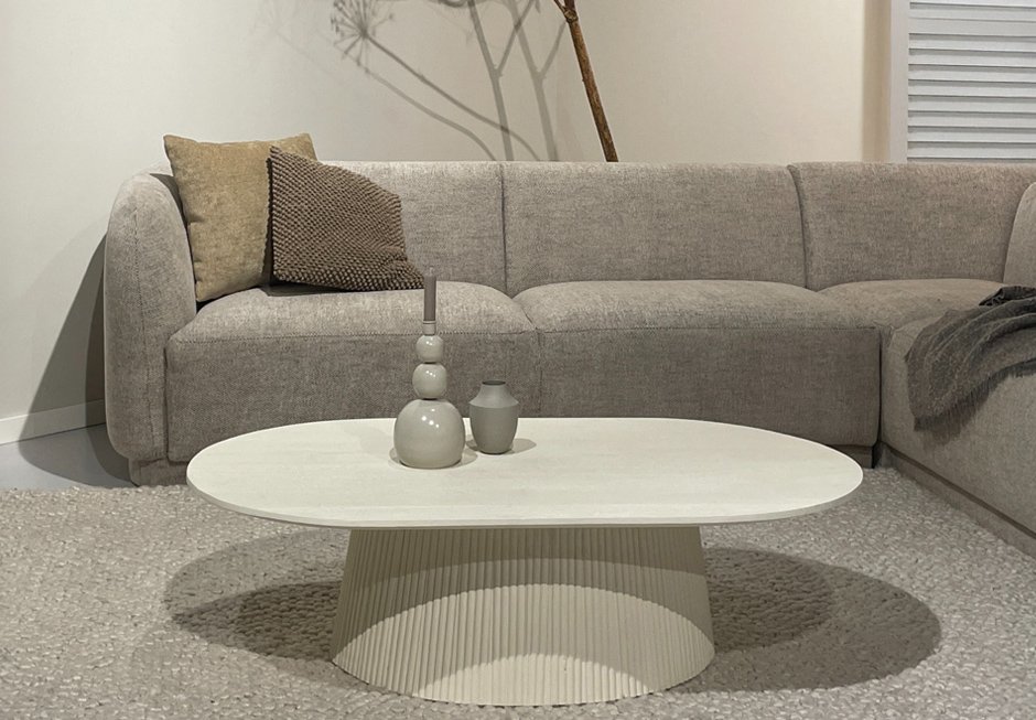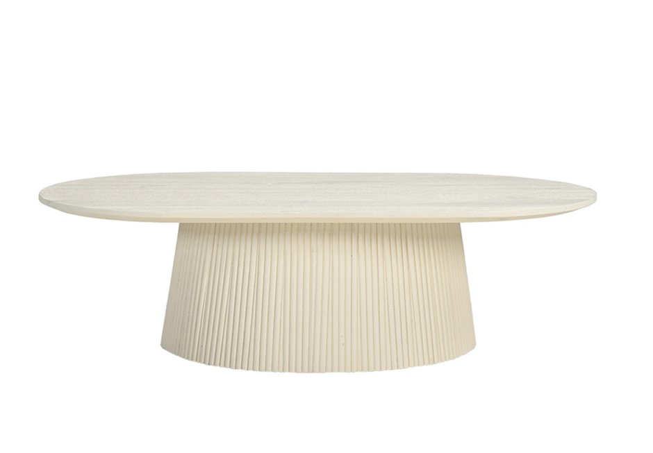 Τραπεζάκι οβάλ από ξύλο mango σε ivory απόχρωση. Διατίθεται σε διαστάσεις 120x70x36h cm.
