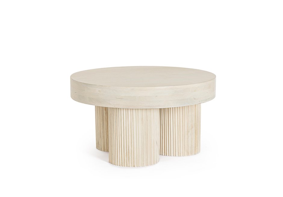 Τραπεζάκι από ξύλο mango και βάση με τρία πόδια, σε καφέ και φυσική απόχρωση. Διατίθεται σε διαστάσεις Ø75x41h cm.