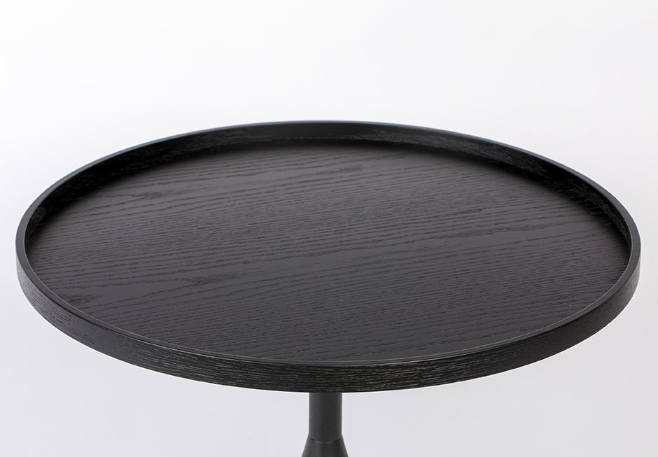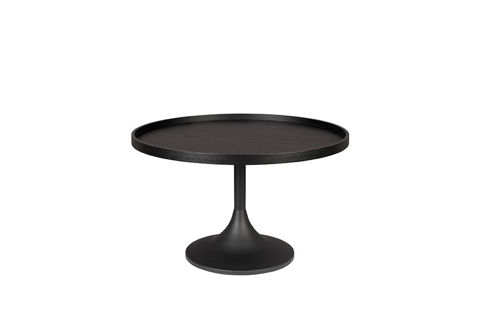 Τραπεζάκι με μεταλλική βάση και επιφάνεια από ξύλο δρυός σε μαύρο χρώμα. Οι διαστάσεις του είναι Ø69x42h.