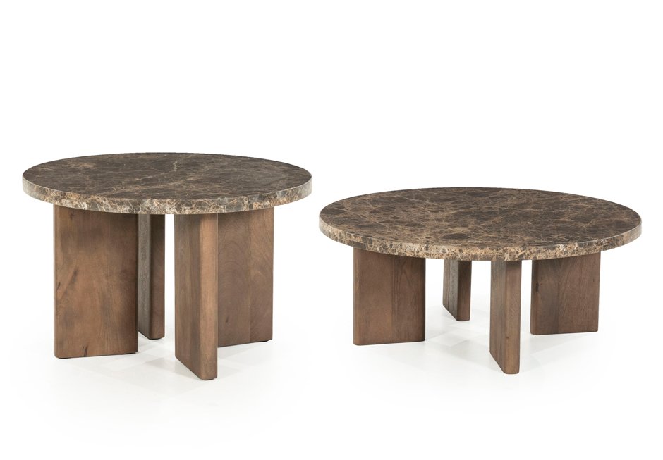 Τραπεζάκι με μαρμάρινη επιφάνεια και βάση από ξύλο mango. Διατίθεται σε διαστάσεις: