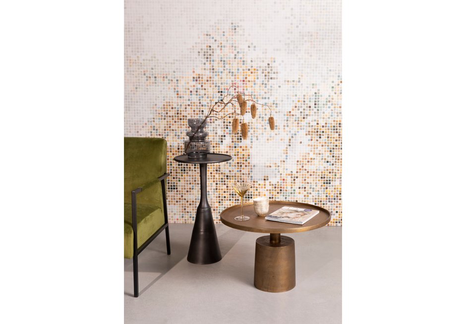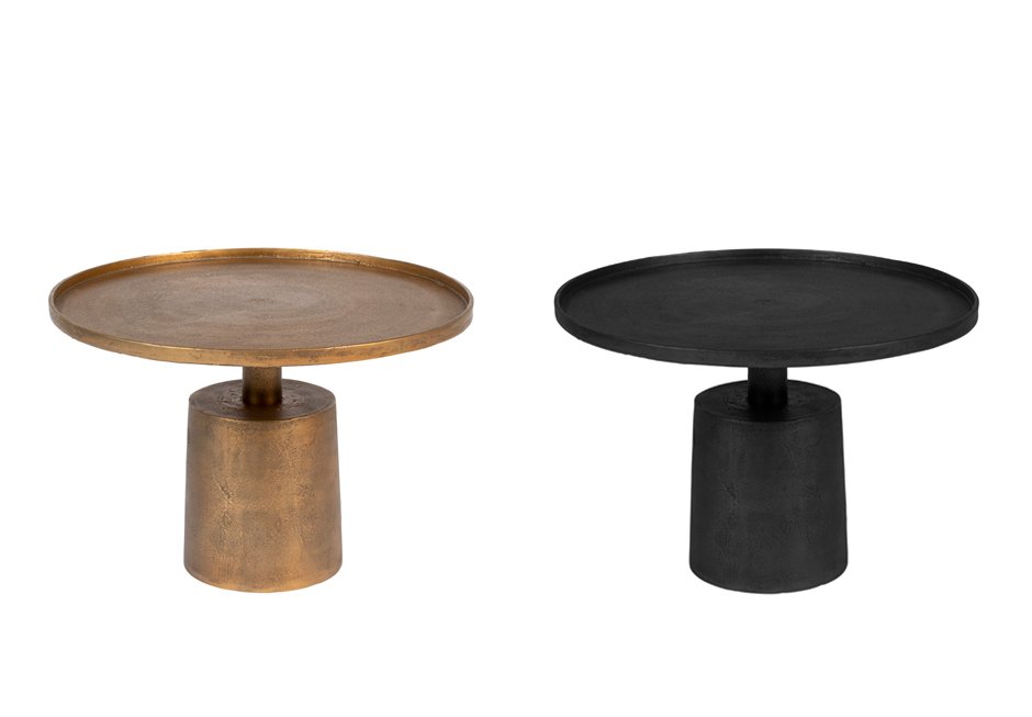 Τραπεζάκι με επιφάνεια αλουμινίου και βάση από antique φινίρισμα σε μαύρο και χρυσό χρώμα. Διατίθεται σε διαστάσεις Ø60x40h cm.
