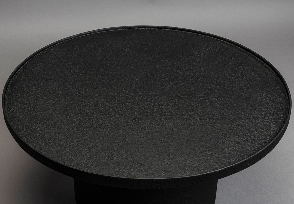 Τραπεζάκι από κόντρα πλακέ με υγρή μεταλλική επίστρωση σε μαύρο χρώμα. Διατίθεται σε διαστάσεις: Ø70x35h cm.