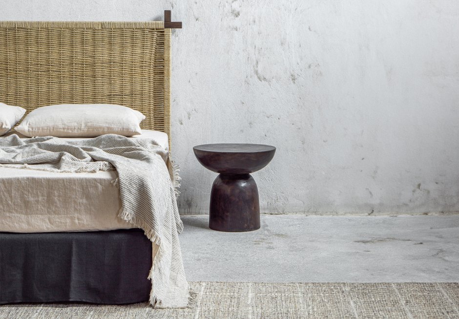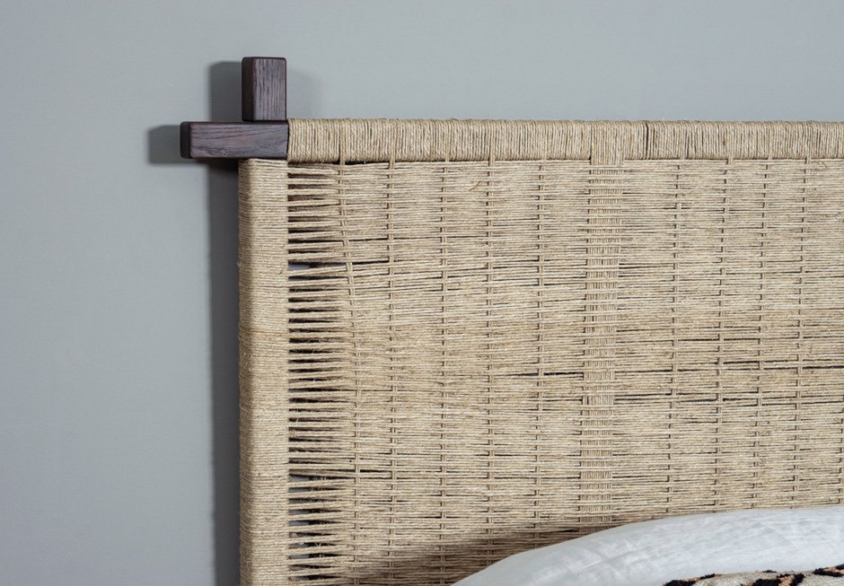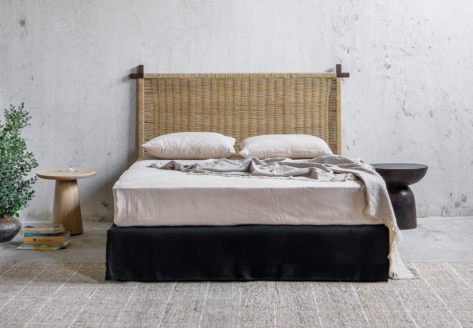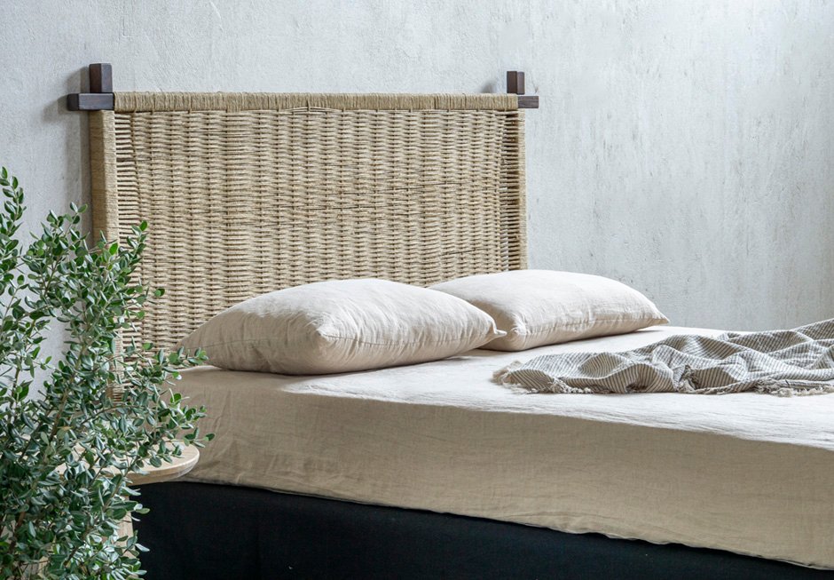 Κρεβάτι ντυμένο με αφαιρούμενο ύφασμα, για στρώμα 160×200 cm και κεφαλάρι από ξύλινο σκελετό με φυσική χειροποίητη πλέξη. Διατίθεται σε ποικιλία χρωμάτων και διαφορετικών διαστάσεων ανάλογα με το στρώμα.