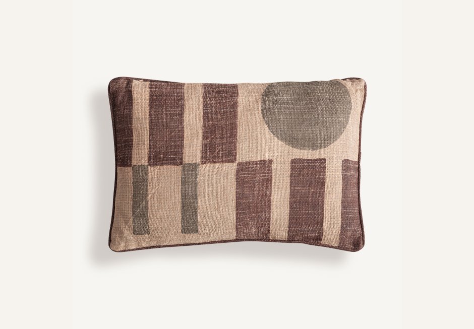 Διακοσμητικό μαξιλάρι από γιούτα σε beige απόχρωση με πράσινη φυσική ίνα. Διατίθεται σε διαστάσεις: 60x13x40cm.