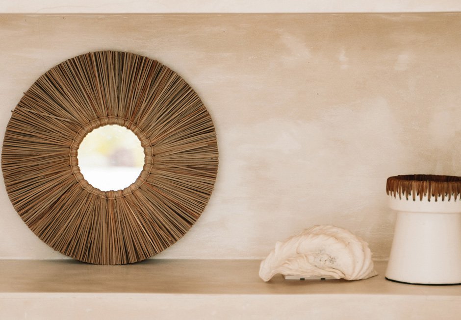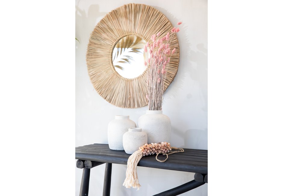 Διακοσμητικός καθρέπτης με πλέξη από φυσικό υλικό. Διατίθεται σε διαστάσεις: