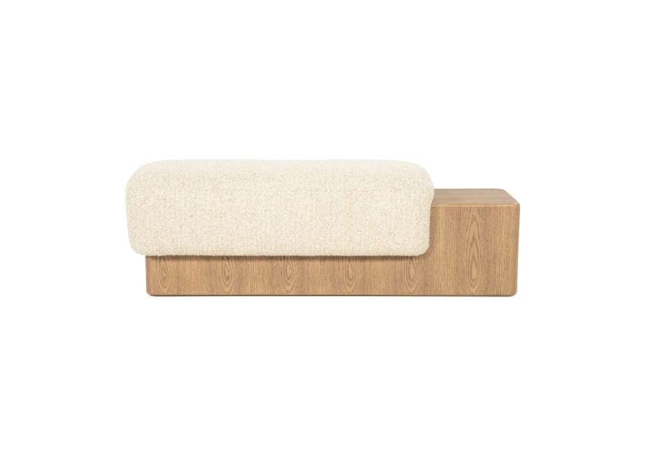 Σκαμπό από ξύλο φτελιάς ντυμένο με ύφασμα σε taupe και beige απόχρωση. Διατίθεται σε διαστάσεις: 133x50x47cm.