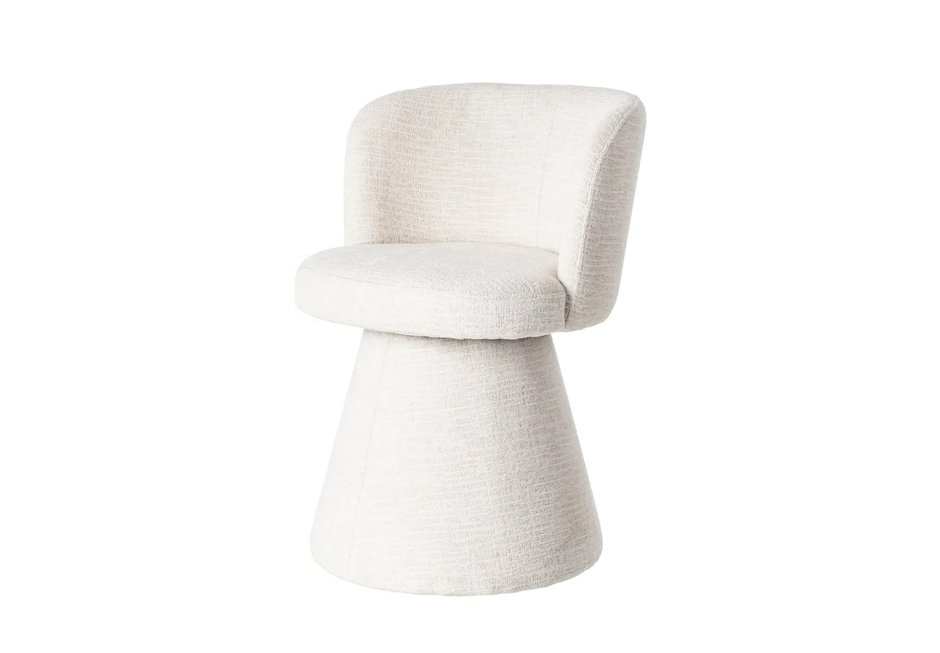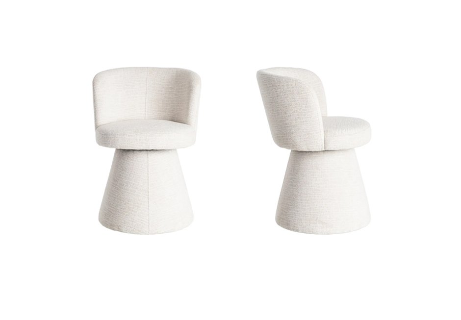 Καρέκλα ντυμένη με υφασμάτινο κάλυμμα σε κρεμ απόχρωση. Διατίθεται σε διαστάσεις 55x50x77h cm.