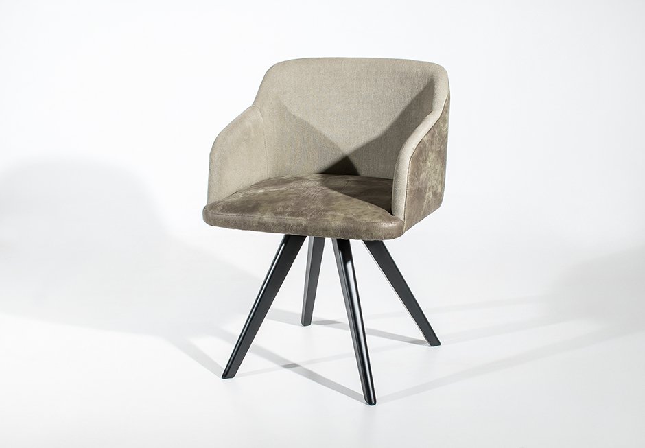 Καρέκλα με πόδια από δρυ μασίφ και ντυμένο κάθισμα. Διατίθεται και σε άλλες αποχρώσεις ξύλου και υφαμάτων.