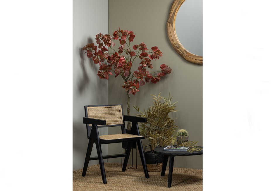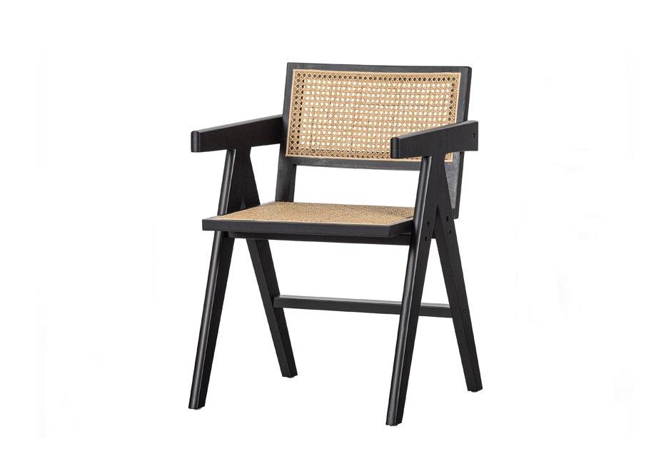 Καρέκλα από ξύλο Πεύκου σε μαύρο χρώμα, με κάθισμα και πλάτη από rattan σε φυσική απόχρωση. Διατίθεται σε διαστάσεις 54x54x80h cm.