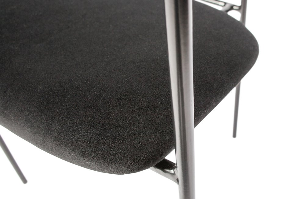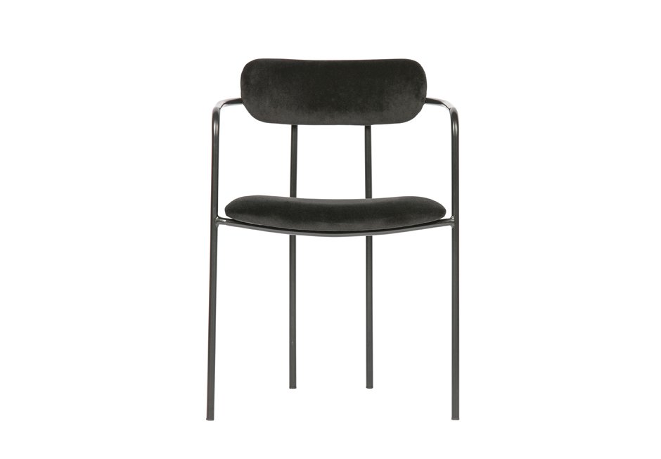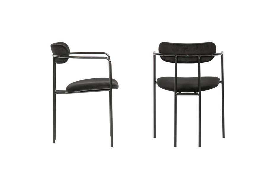 Καρέκλα από μεταλλικό σκελετό, επενδυμένη από βελούδο σε μαύρο χρώμα. Διατίθεται σε διαστάσεις 52x50x74h cm.