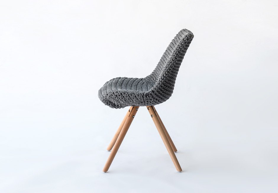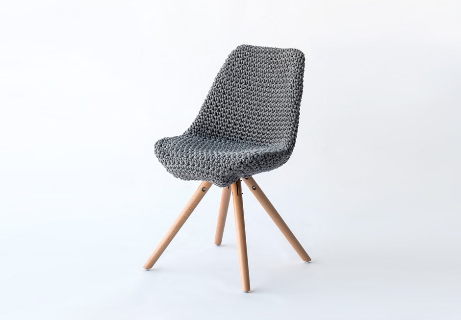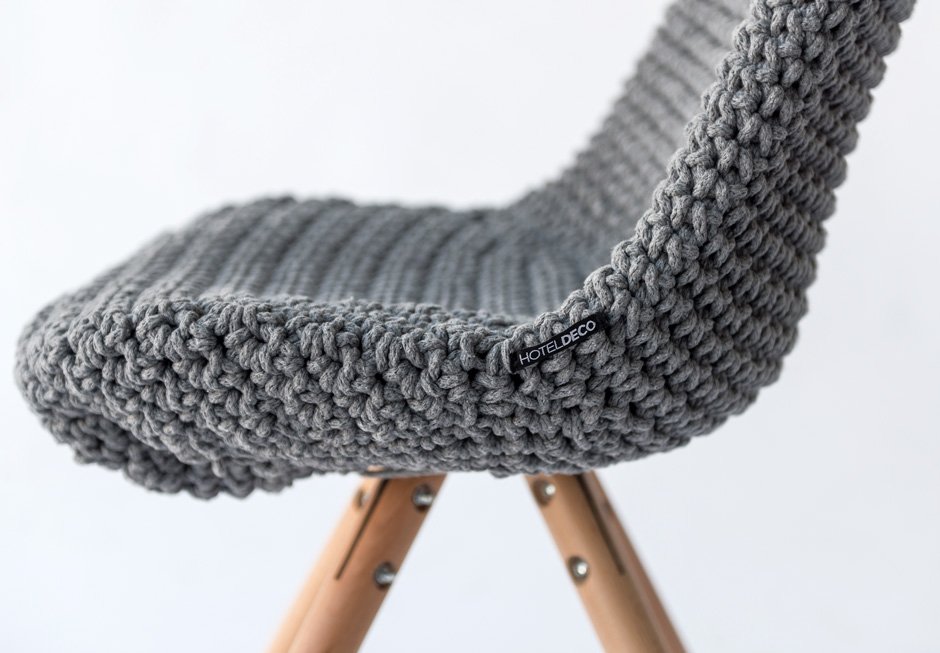 Καρέκλα πλεκτή με μασίφ πόδια. Διατίθεται με γκρι απόχρωση πλέξης.