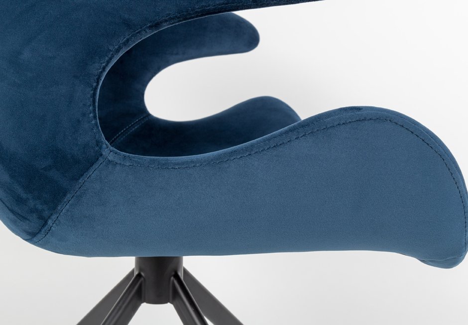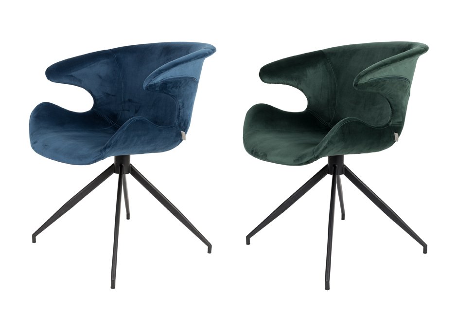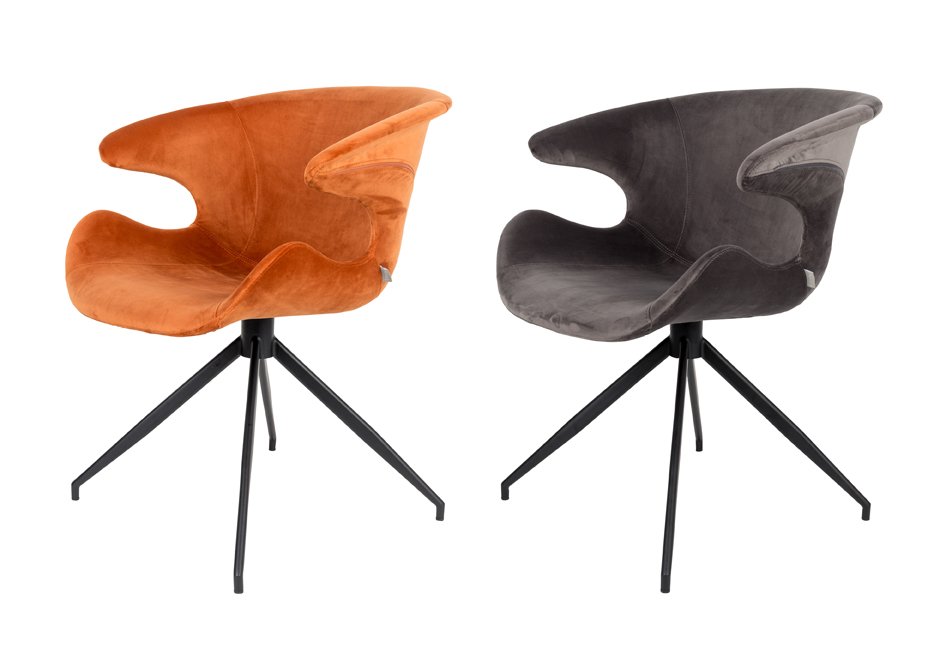 Καρεκλοπολυθρόνα σε πράσινο, πορτοκαλί, γκρι ή σκούρο μπλε βελούδο και μαύρη μεταλλική βάση. Διατίθεται σε διαστάσεις 63x62x78,5h με ύψος καθίσματος 45 cm, βάθος καθίσματος 45,5 cm και ύψος μπράτσου 68/75 cm.