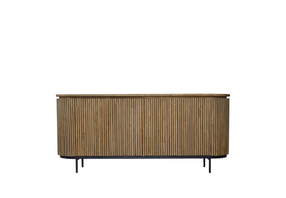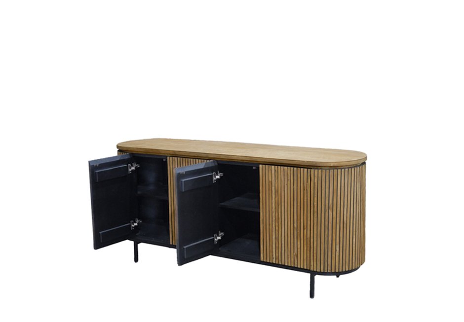 Μπουφές από ξύλο teak σε φυσική απόχρωση και βάση σε μαύρο χρώμα. Διατίθεται σε διαστάσεις 180x43x80h cm.