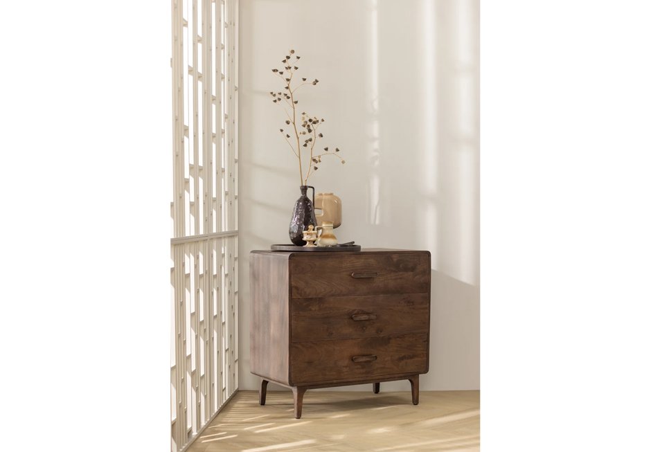 Μπουφές με 3 συρτάρια, από ξύλο mango σε dark brown απόχρωση. Διατίθεται σε διαστάσεις 90x50x90h cm.