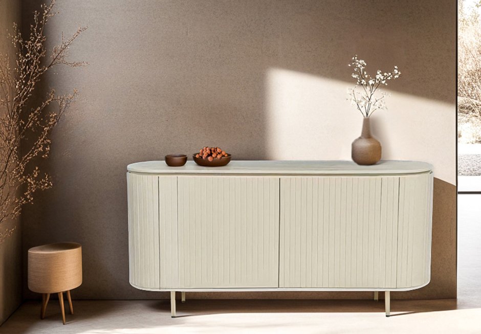 Μπουφές από ξύλο mango και μεταλλική βάση σε off white απόχρωση. Διατίθεται σε διαστάσεις 170x45x81h cm.