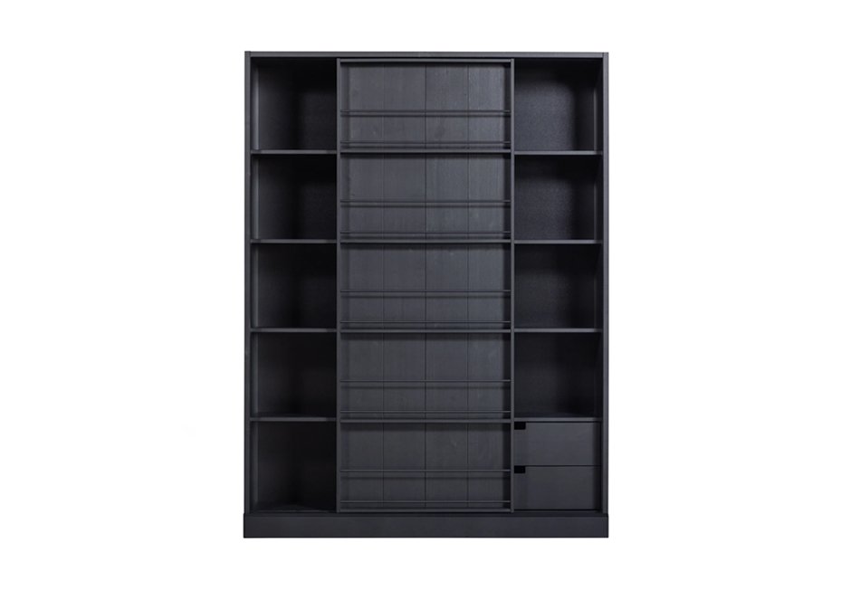 Μπουφές από ξύλο Πεύκου με ανασυρόμενα ράφια σε matt black απόχρωση. Διατίθεται σε διαστάσεις 150x47x200h cm.