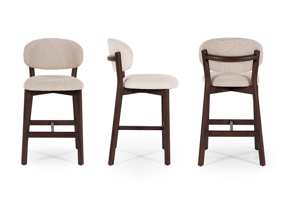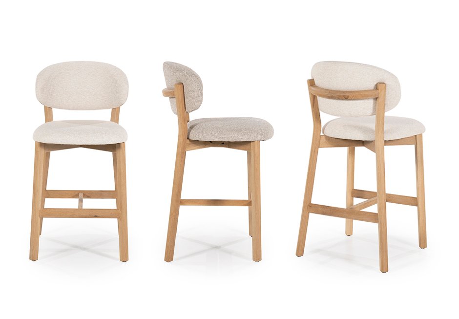 Σκαμπό bar από ξύλο δρυς με ύφασμα στο κάθισμα και στην πλάτη. Διατίθεται με: