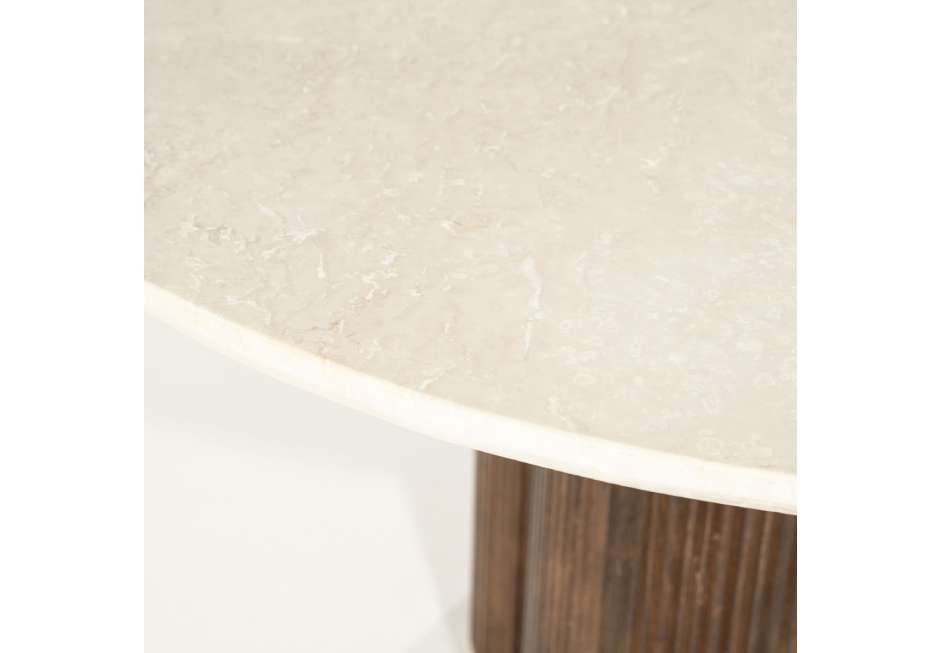 Τραπέζι από ξύλο μάνγκο και επιφάνεια μαρμάρου botochino. Διατίθεται σε διαστάσεις: 130x130x76h cm.